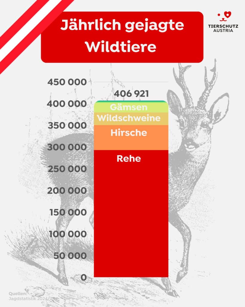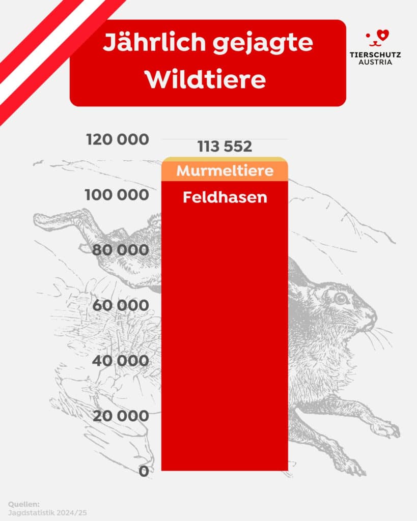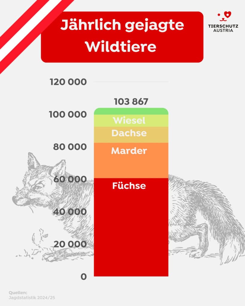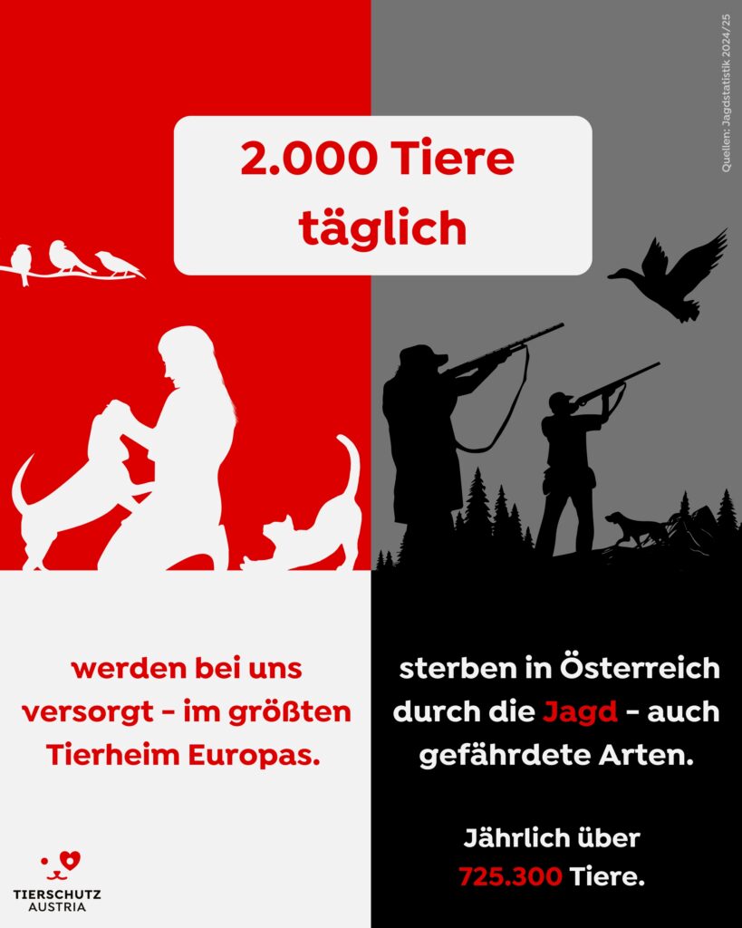 - 725 300 Tiere wurden 2024/25 in Österreich abgeschossen – das sind täglich so viele Tiere, wie wir im Tierschutzhaus versorgen.