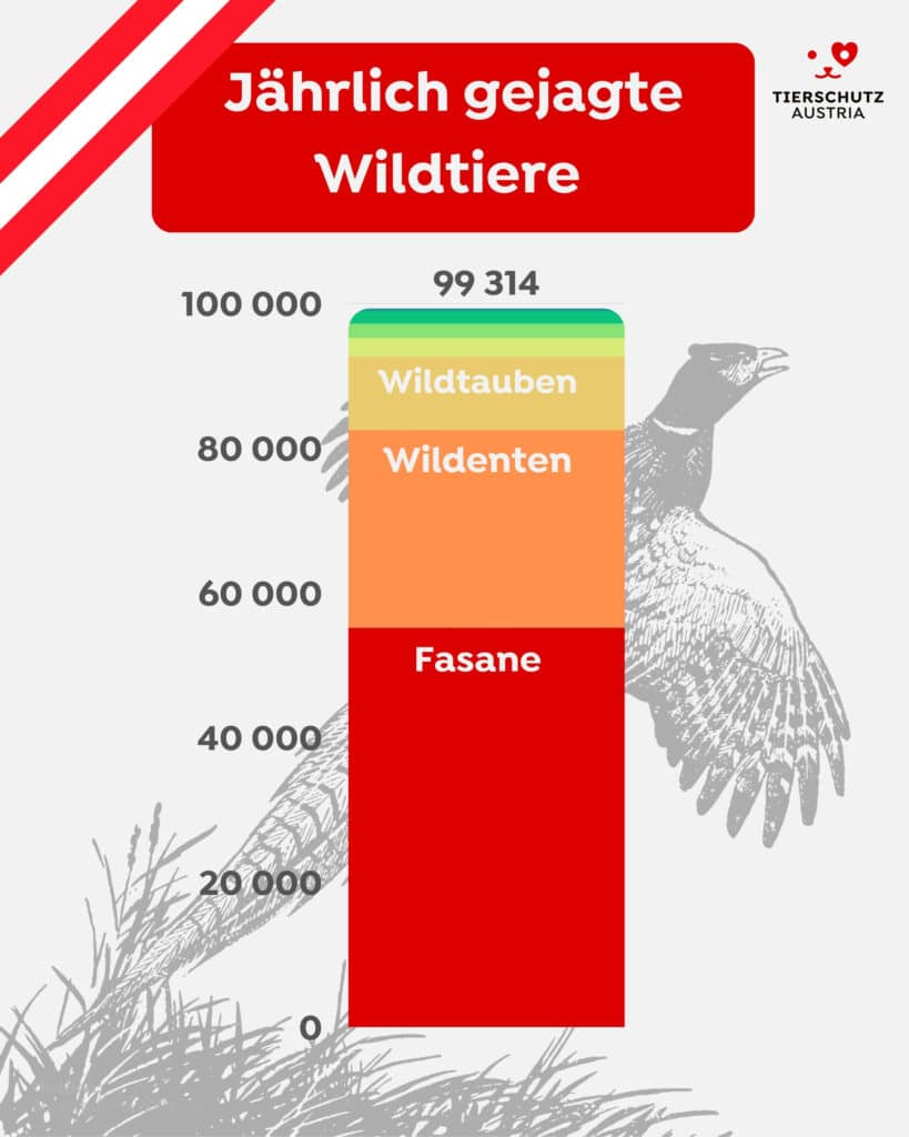 Besonders absurd ist die Jagd auf Fasane und Enten: Laut Statistik Austria wurden im heurigen Jagdjahr wieder mehrere zehntausend Fasane und Wildenten erlegt. Beide werden in großem Stil gezüchtet, ausgesetzt und anschließend abgeschossen.