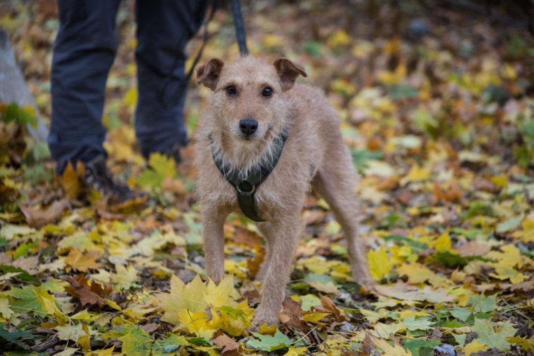 Der unsichere, 2020 geborene Border Terrier-Mischlingsrüde Benji ist bei Menschen anfangs unsicher, benötigt daher eine kurze Kennenlernphase. Auch beim Handling (z.B. Brustgeschirr anziehen) ist Benji sehr unsicher. Daher suchen wir für Benji Menschen, die seine Körpersprache lesen können, ihn nicht überfordern, sondern Zeit und Verständnis entgegenbringen, damit er keinen Grund hat, sich verteidigen zu müssen. Routine, die ihm Sicherheit gibt, ist daher sehr wichtig für den lieben Kerl. Lt. Vorbesitzer hat Benji auch Futter verteidigt, bei uns zeigt er dieses Verhalten nicht. In seinem letzten Zuhause konnte Benji bereits alleine bleiben. Benji ist stubenrein, hat mit einem Zweithund zusammengelebt, verträgt sich aber mit fremden Hunden eher schlecht, fährt brav im Auto mit und kennt die Grundkommandos. Ein Hund zum Kuscheln und Knuddeln ist Benji nicht – dies sollten seine zukünftigen Menschen akzeptieren können. Da er mit dem Stadtleben überfordert ist suchen wir für Benji ein Zuhause am ruhigen Stadtrand oder Land."