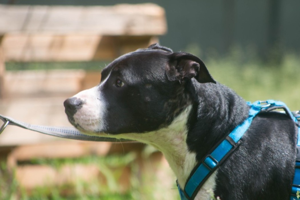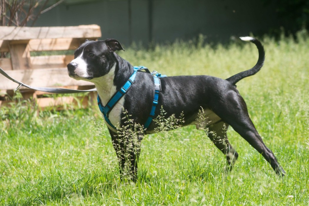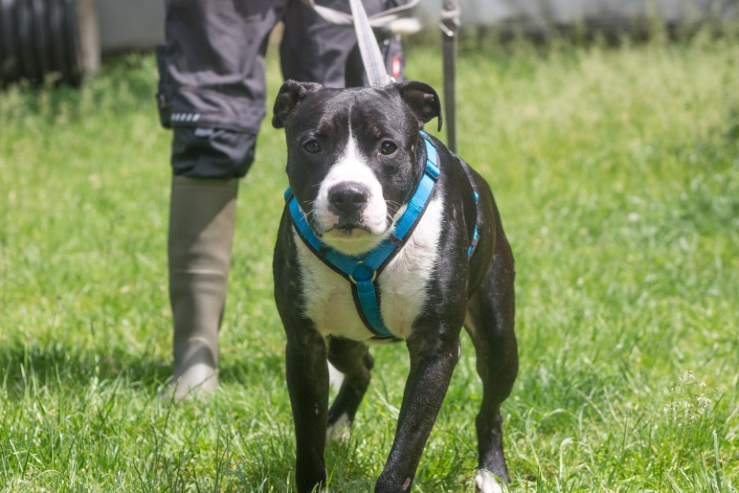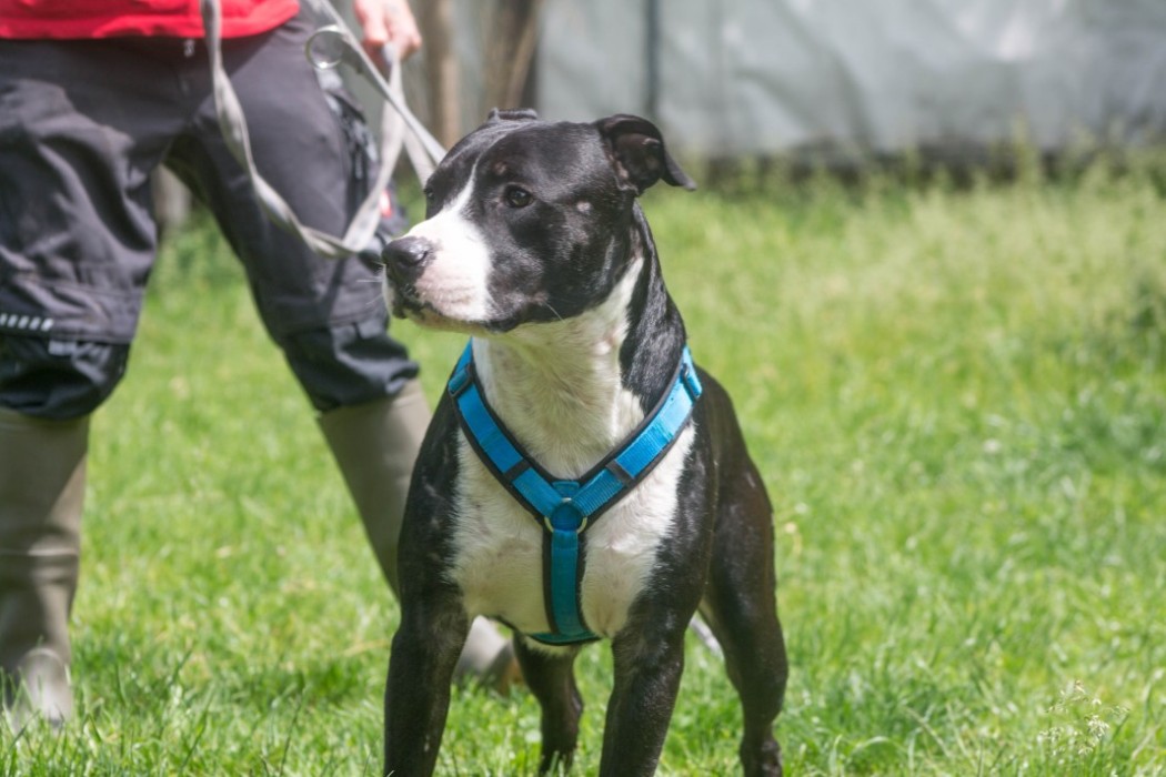 Der stürmische, 2023 geborene American Staffordshire Terrier-Rüde Romeo ist eher unsicher, da er in seinem kurzen Leben schon viel Negatives durchmachen musste. Der arme Tropf hatte ein Zuhause, wurde in Rumänien mitten im Winter in eine Tötung gebracht, wo er nicht nur gefroren hat, sondern auch misshandelt wurde bis er den Weg zu uns nach Österreich gefunden hat. Romeo benötigt eine kurze Kennenlernphase, um Vertrauen aufzubauen, ist dann sehr freundlich und kuschelbedürftig. Wie er sich mit anderen Hunden verträgt, müssen wir erst schrittweise in Erfahrung bringen, wenn es sei Stresslevel zulässt. In seinem zukünftigen Zuhause möchte Romeo auf alle Fälle Einzelprinz sein. Der liebenswerte Rüde kennt das Brustgeschirr, möchte das Anziehen jedoch noch üben, da er bei uns sehr gestresst ist und stillhalten nicht zu seinen Stärken gehört. An der Leine geht er sehr brav. Bei uns ist Romeo stubenrein – außer bei Gewitter, da fürchtet er sich, sodass er nicht hinaus geht. Für den lieben Kerl suchen wir ein Zuhause am Land.